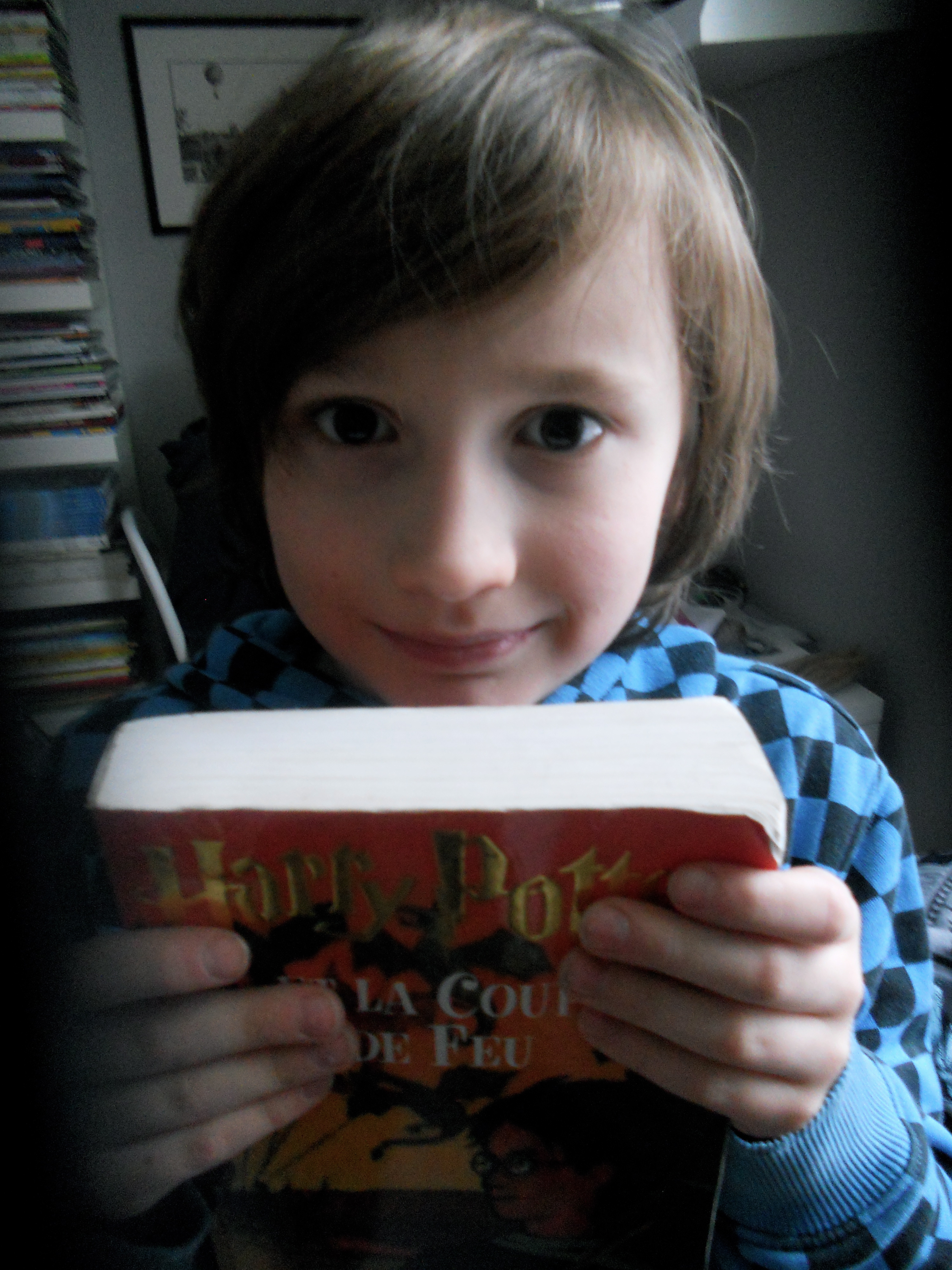 | Sur la photo, Louis-Antoine est fier d’être libre de lire Harry Potter |