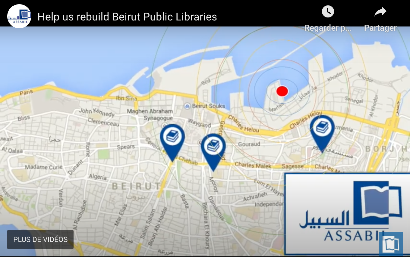 Merci de visiter la page de l’appel pour l’aide à la reconstruction des bibliothèques de Beyrouth coordonné par Assabil. Vous pouvez également contribuer à l’effort en partageant cet appel auprès de vos réseaux ou des associations documentaires québécoises ou canadiennes afin de les sensibiliser.
